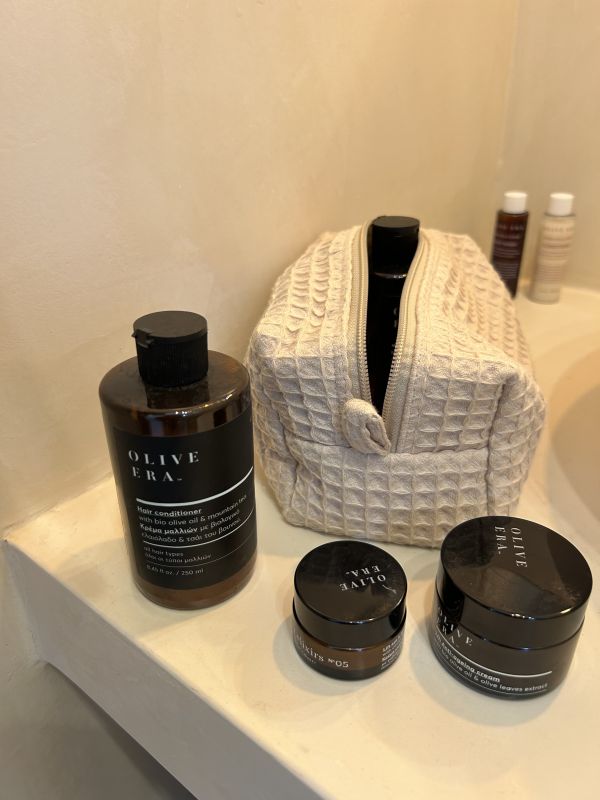 Hergestellt aus weicher handschmeichelnder Baumwolle in einem beruhigenden Latte-Ton. Die sanfte Textur fühlt sich gut an, während das Material ebenso für Haltbarkeit, wie für einfache Reinigung sorgt. Ob in Ihrer Reisetasche oder auf der Kommode platziert, dieses Mäppchen verbindet Ästhetik und Funktionalität.